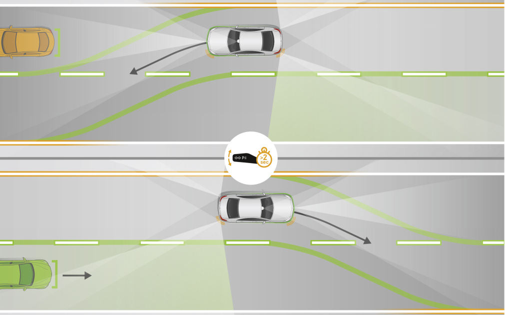 При включении «поворотника» электронный ассистент «проверит», безопасен ли маневр, получив информацию от системы мониторинга слепых зон, и, найдя «просвет» в потоке, сам активирует рулевое управление и направит автомобиль на соседнюю полосу.