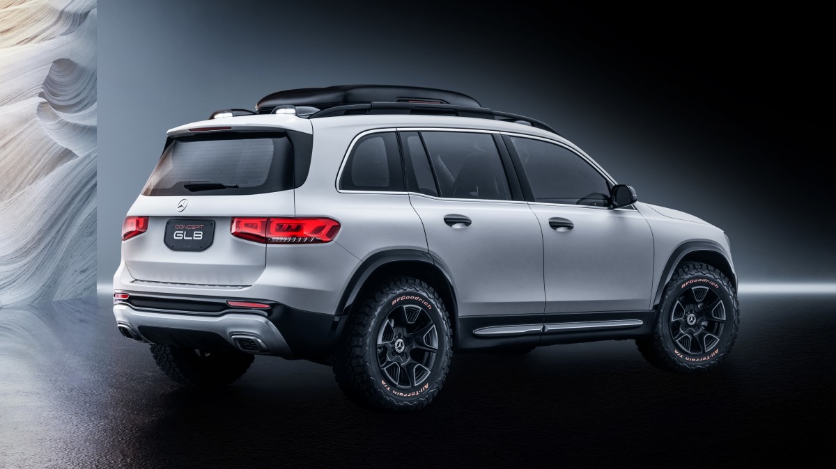 В Шанхай Mercedes привезет «экспедиционную» версию GLB Concept – с дополнительным светодиодным «светом» на крыше, выполненными в черном цвете расширителями колесных арок, дверными ручками и корпусами зеркал заднего вида, декоративными вставками на порогах; «обут» автомобиль в покрышки BFGoodrich All-Terrain T/A.