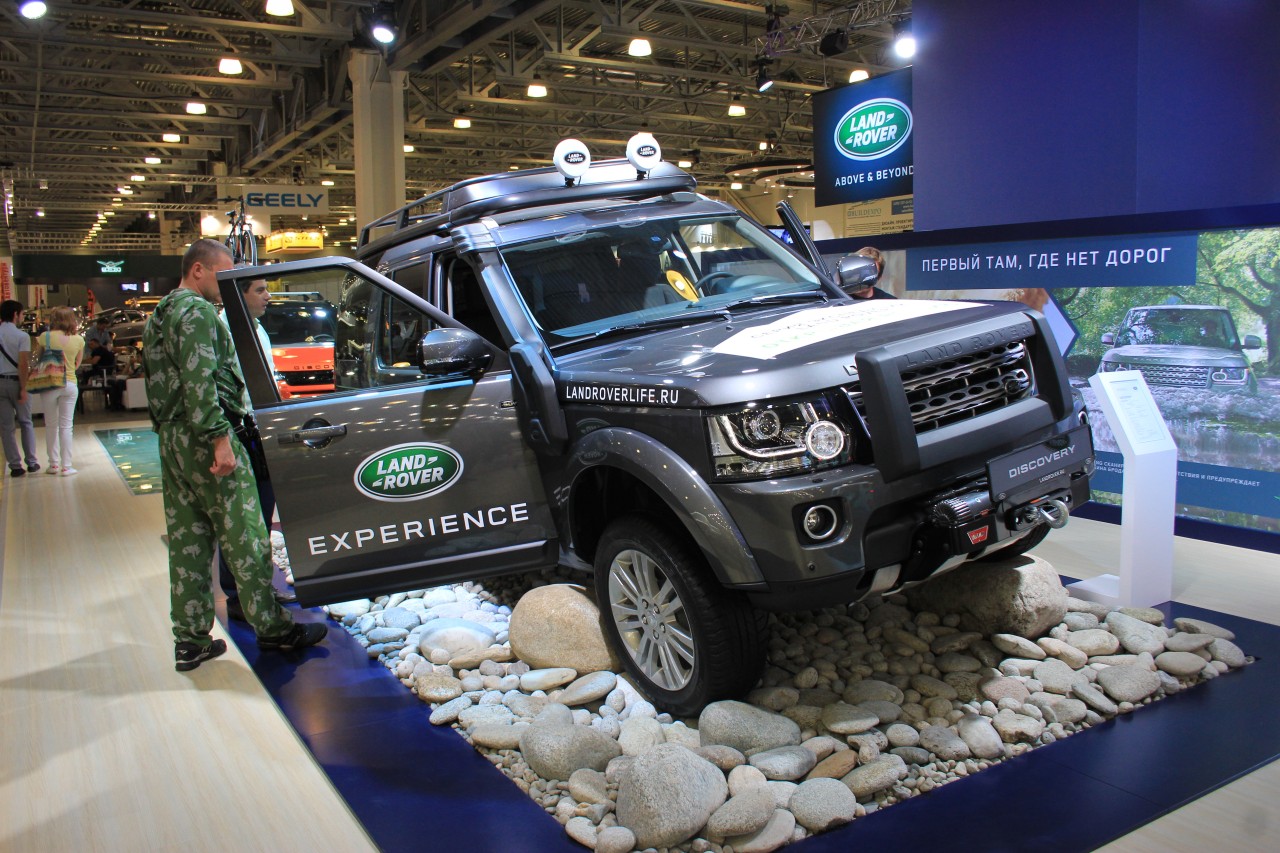 Посреди павильона гордо предстали британцы. Вот уж кому нечего стесняться на этой выставке. У «Ленд Ровера» в принципе нет легковых автомобилей – благодаря уникальному комплексу полного привода и системы Terrain Response, которым оснащены все модели марки, даже кроссоверы Evoque и Discovery Sport обладают неплохими способностями вне асфальта.
