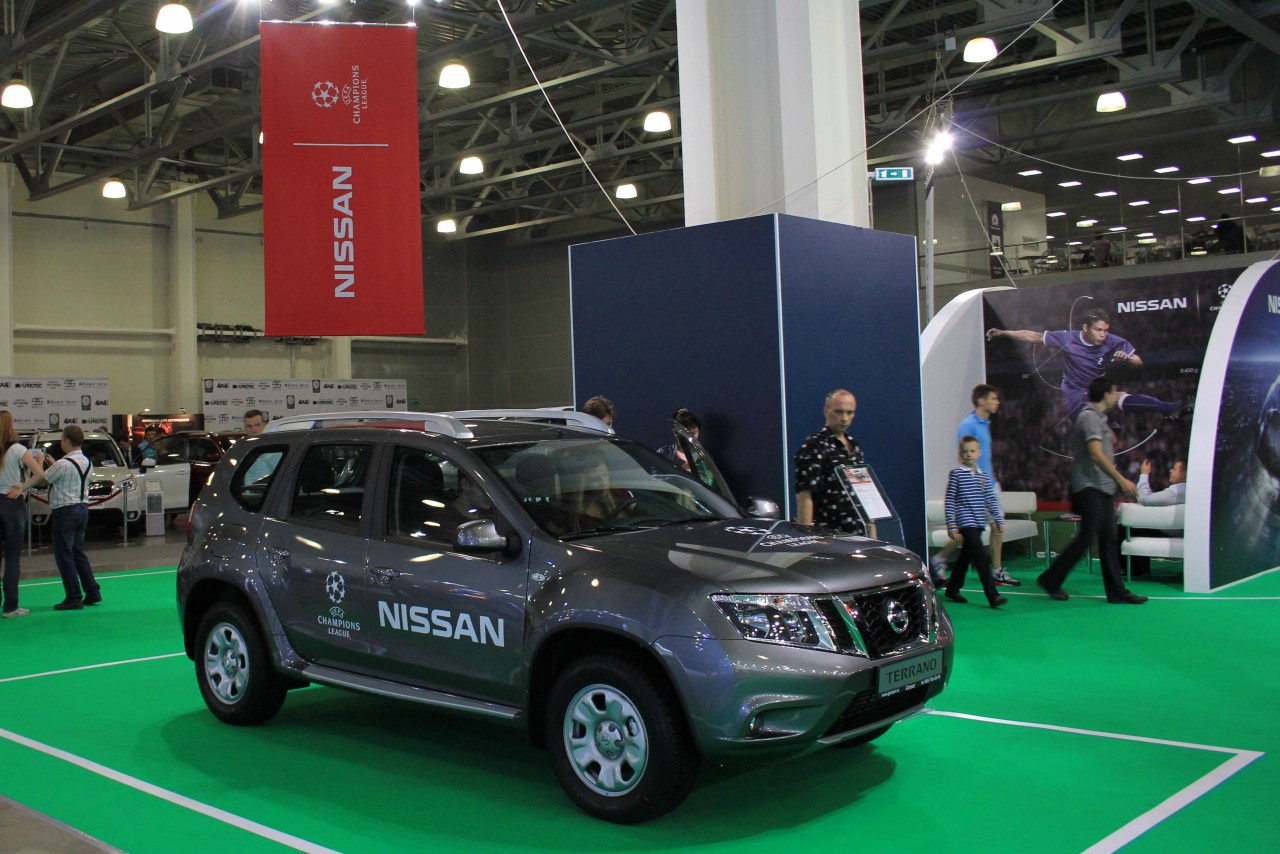 Прямо напротив выставились одни из главных рыночных соперников – земляки из Nissan. В этой компании отмечается праздник футбольный, поскольку «Ниссан» стал официальным спонсором не только двух российских клубов, но всей Лиги Чемпионов. И если футбольное поле японцы для выставки подготовили, то вот с внедорожниками наблюдался острый дефицит.