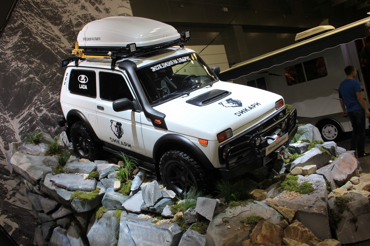 Одно но. На выставку внедорожников АвтоВАЗ не привез ни одного внедорожника. Ну, или почти ни одного. Наша родная и нестареющая «Нива» (она же Lada 4x4) в тюнинг исполнении Elbrus Edition ютилась на краю стенда, уступив центральное место новинкам компании – Vesta, X-Ray и выводку модификаций Cross, не имеющим к бездорожью никакого отношения.