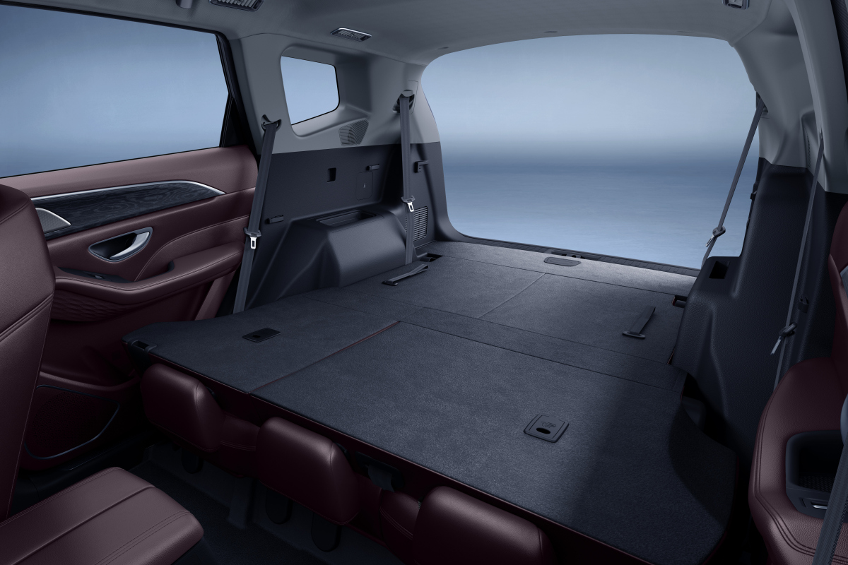 Несмотря на это, X90Plus поставляется к нам только в пятиместном варианте, хотя в Китае есть и трехрядные версии (а также варианты с капитанскими креслами на втором ряду, но у нас, похоже, их тоже не будет). При этом заявленный объем багажника — всего 486 л либо 1052 л со сложенным задним диваном.