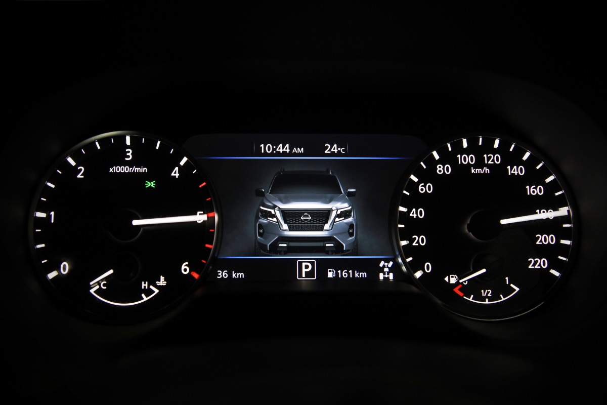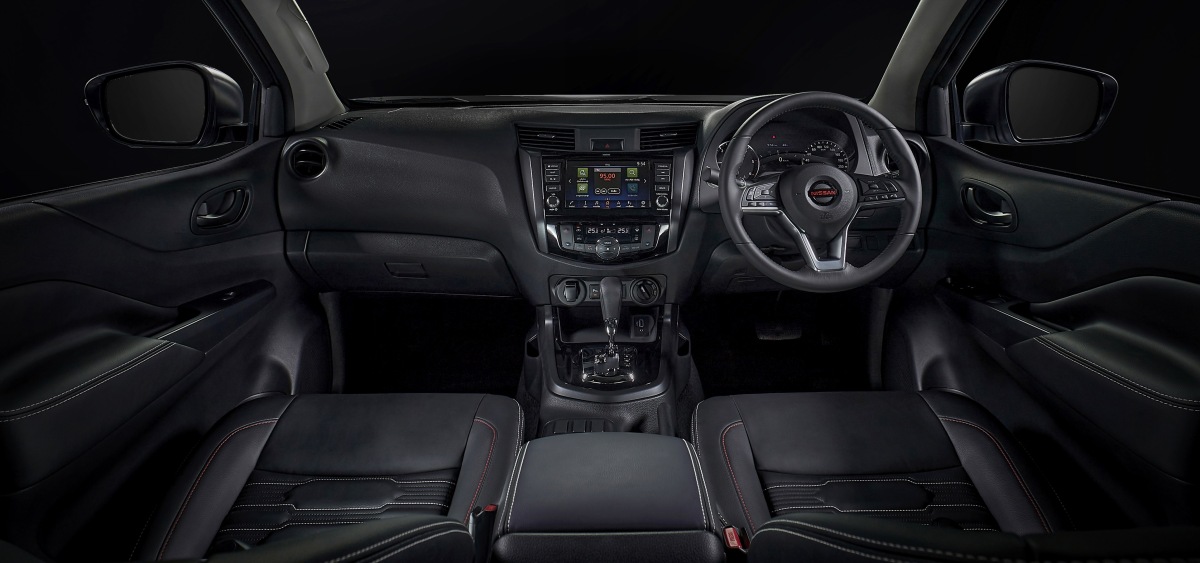 В интерьере пикапа изменений оказалось меньше, чем в дизайне кузова. Navara получил в результате рестайлинга новый трехспицевый руль (такой же, как у современных кроссоверов Nissan), а также цветной дисплей бортового компьютера диагональю 7 дюймов на приборной панели (он доступен лишь для машин в самых насыщенных комплектациях). Кроме того, расширился список доступных для пикапа электронных систем безопасности и помощи водителю семейства Nissan Intelligent Mobility.