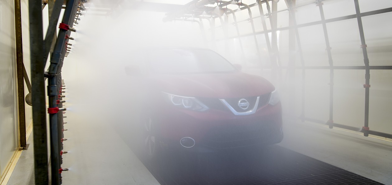 Как сообщает пресс-служба японской компании, все поставляемые в Европу автомобили Nissan проходят в европейском техническом центре компании так называемый «муссонный тест» в специальной камере, напоминающей увеличенную в размерах посудомоечную машину.