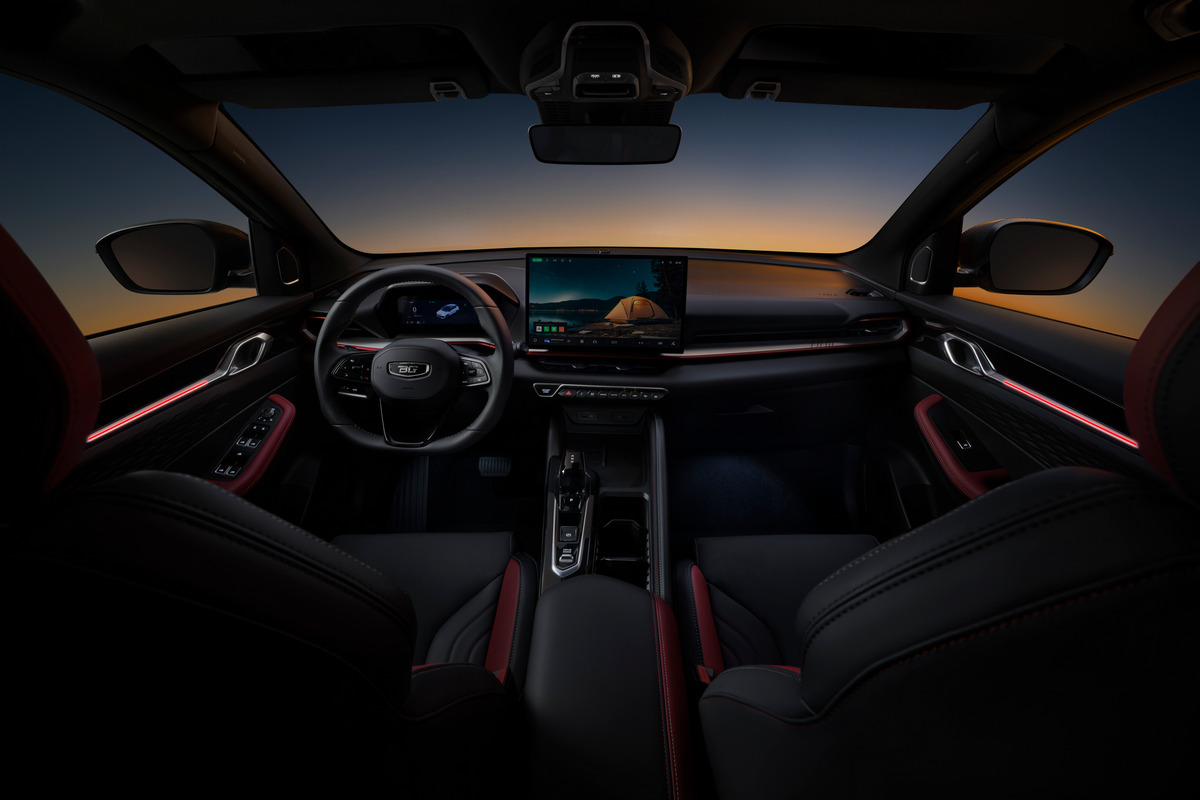 Среди основных опций – полностью светодиодная оптика, панорамная крыша с люком, электропривод складывания наружных зеркал заднего вида, однозонный климат-контроль, круиз-контроль, беспроводная зарядка для смартфона, многоцветная подсветка интерьера в дверях, прозрачные солнцезащитные козырьки, выполненные из затемненного стекла; 14,6-дюймовая мультимедийная система, а также ряд электронных ассистентов.