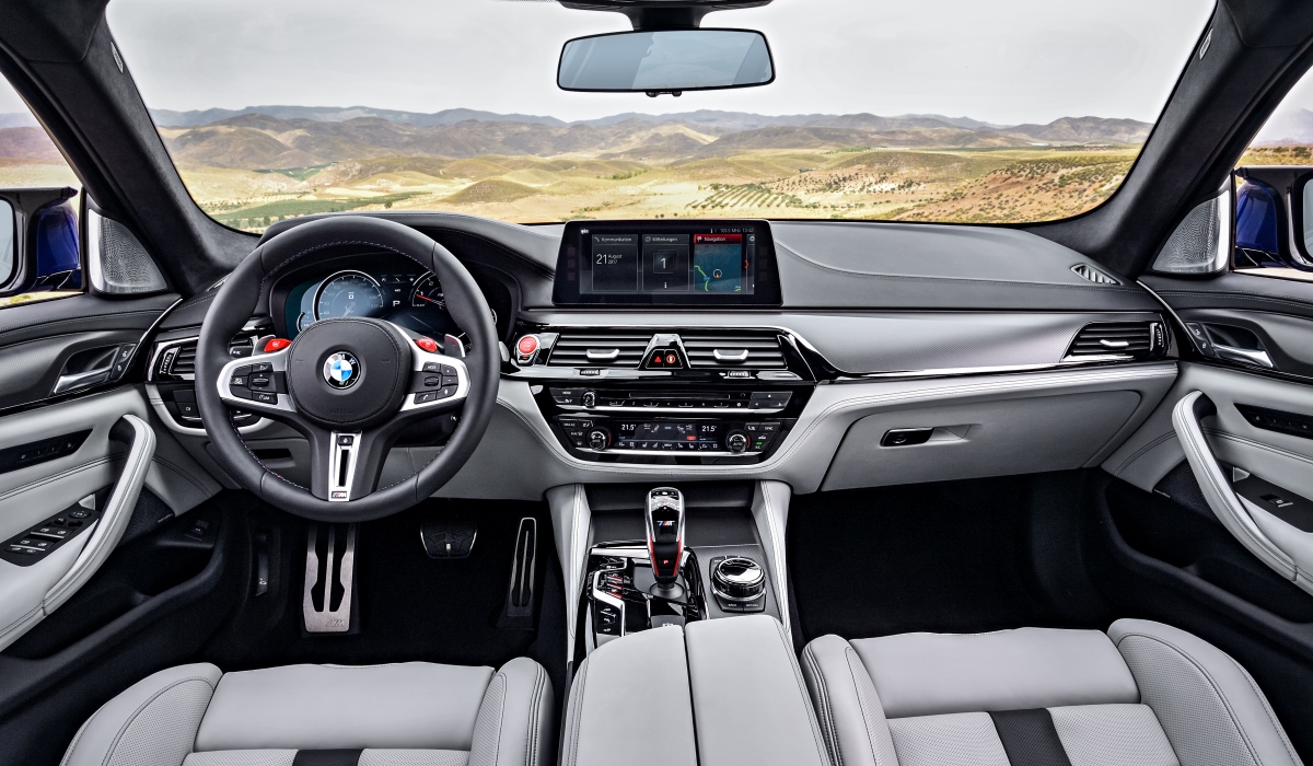 Помимо указанного оборудования, в стандартную комплектацию BMW M5 2017 входят навигационная система Professional с экраном диагональю 10,25 дюйма, интерфейс Apple CarPlay, система управления жестами, проекционный дисплей BMW M, адаптивные светодиодные фары.