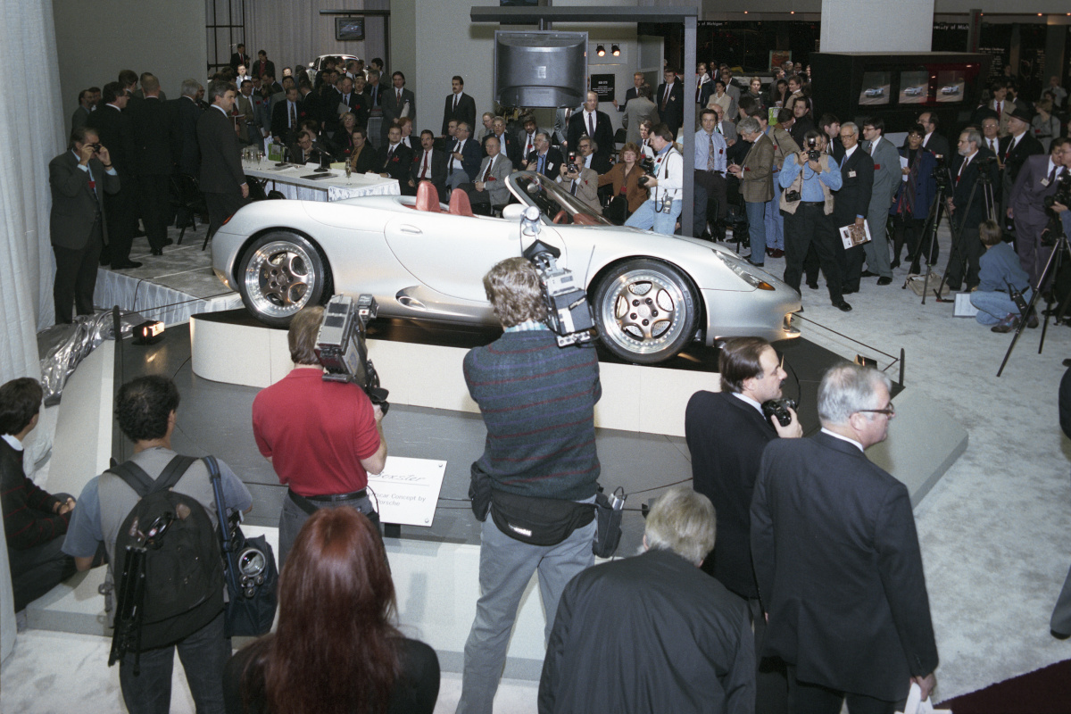Детройт, 1993 год. Porsche находит во всех смыслах изящный выход из глубокого кризиса: небольшой родстер, который будет дешевле, чем 911, но таким же задорным. Поговаривают, что на создание Boxster немцев вдохновил успех Mazda MX-5/Miata