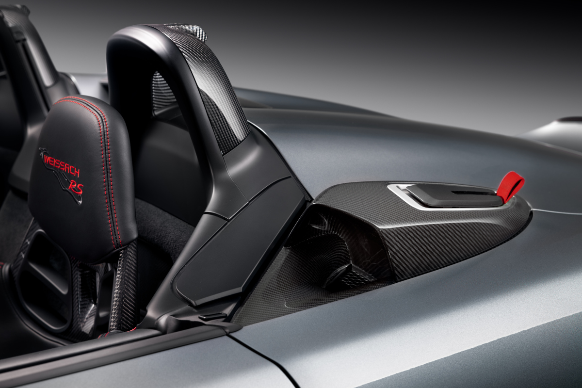 За доплату в 11 965 евро доступен трековый пакет Weissach, в который входят карбоновый обвес, магниевые колеса (они тоже 20-дюймовые, но каждый диск весит на 2,5 кг меньше) и титановый выхлоп, но каркас безопасности недоступен даже за доплату: это прерогатива купе, как и крупное заднее антикрыло.