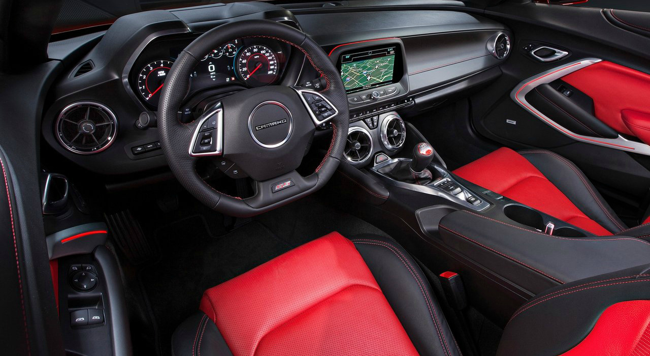 Внутри Camaro устанавливаются спортивные сиденья, новое поколение информационно-развлекательной системы MyLink с 8-дюймовым дисплеем высокого разрешения. Приборная панель маслкара полностью цифровая.