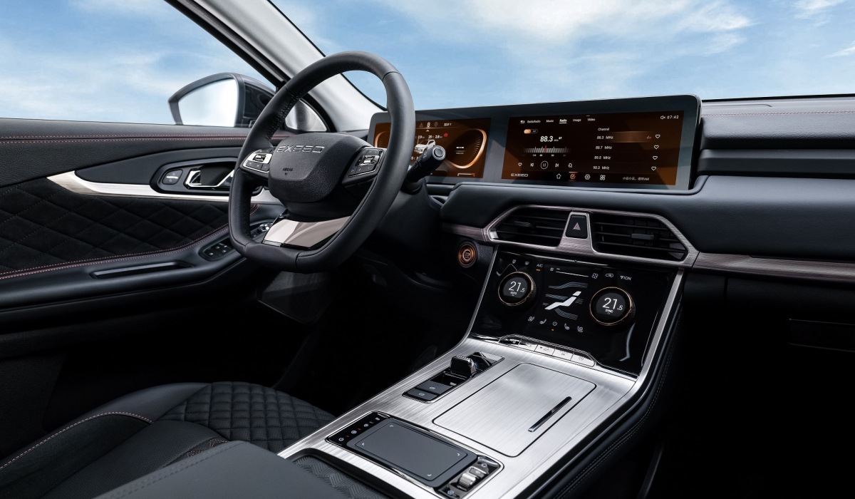 В салоне новый TXL получил два 12,3-дюймовых экрана с разрешением 1920x720 пикселей – точно такие же будут устанавливаться на флагманский Exeed VX. Через расположенный на центральной консоли тачпад можно будет настраивать звучание аудиосистемы Sony с восемью динамиками и цветовую гамму подсветки салона. От кнопок управления климат-контролем решено было отказаться в пользу сенсорной панели, которая также отвечает за функции обогрева и вентиляции сидений.