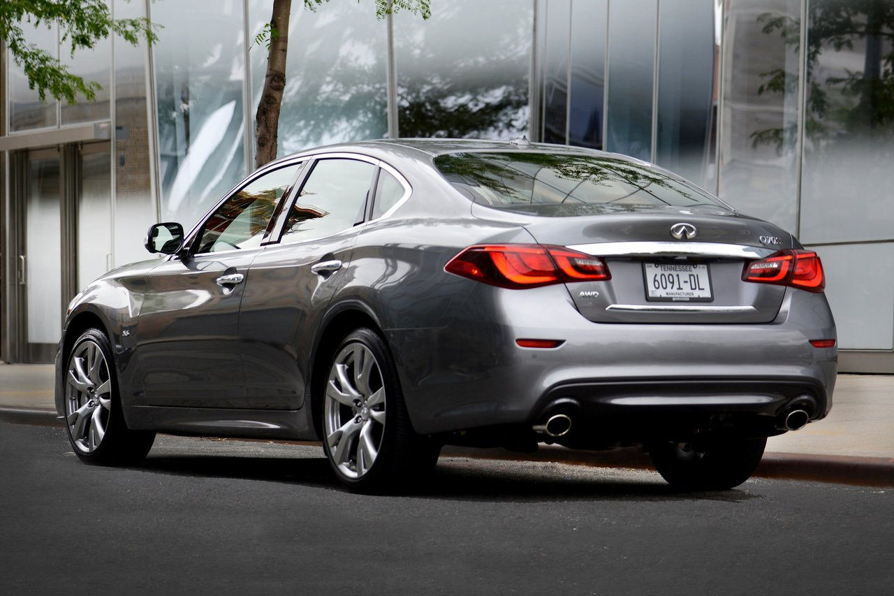 Обновленный седан отличается от предшественника подретушированной внешностью (новая радиаторная решетка, иные бамперы, фары и задние фонари) и расширенным набором современным систем помощи водителю. Q70 теперь может быть оснащен набором камер для кругового обзора, системами автоматического торможения и предупреждения об опасности столкновения.