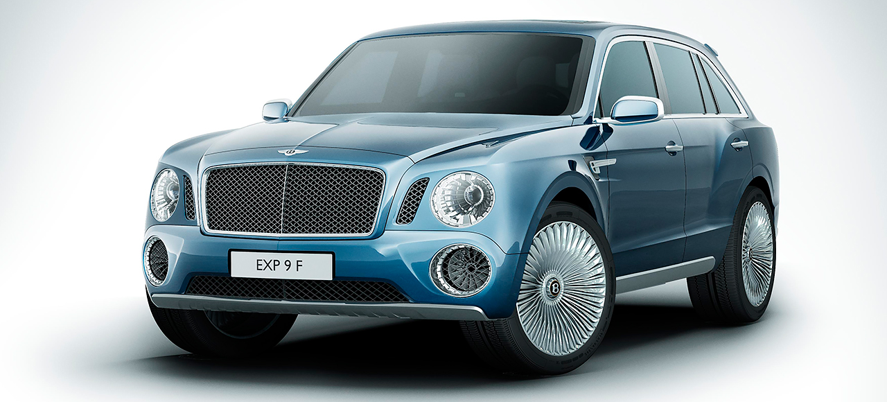 Видимо почувствовав угрозу со стороны конкурентов, стали суетиться и другие автопроизводители сегмента Luxury. Вслед за Maserati компания Bentley шокировала публику концептуальным внедорожником EXP9F. Дизайн этой модели не ругал только ленивый, но англичане обещают, что серийная модель будет выглядеть иначе. Радует, что показанный внедорожник не был «пустышкой» — это уже реальный автомобиль, на реальном шасси и с реальным мотором. Кстати, мотор здесь фольксвагеновский — 6,0-литровый W12, сопряженный с 8-ступенчатым «автоматом». Этот агрегат, развивающий 600 л. с., также ставят на Bentley Continental, однако, как уверяют англичане, платформа у EXP9F своя собственная.