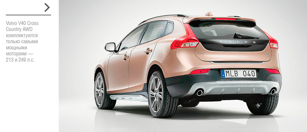 А как начет автомобилей повышенной проходимости? Здесь тоже есть относительно недорогие модели премиум-класса. Например, Volvo V40 Cross Country. Младший представитель семейства «кросс-кантри» представляет собой хетчбэк V40 с «пакетом для плохих дорог», включающим увеличенный на 40 мм дорожный просвет, бамперы с вертикальными светодиодными ходовыми огнями, защитные накладки на порогах, рейлинги на крыше и легкосплавные диски оригинального дизайна. Базовая версия Volvo V40 Cross Country оснащена 2,0-литровым турбомотором мощностью 180 л. с. и «автоматом», но полный привод ей не положен. Трансмиссией 4x4 комплектуются только самые мощные модификации, развивающие 213 и 249 л. с., чей ценник уже не выглядит столь привлекательно: за них придется отдать от 1 279 000 и от 1 449 000 руб. соответственно.