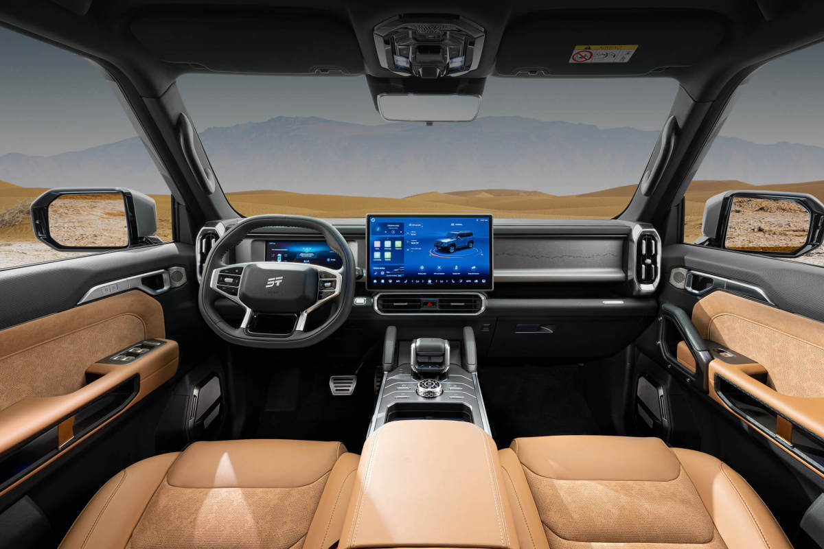 В салоне Jetour T2 – 10,25-дюймовая цифровая приборная панель, 15,6-дюймовый экран мультимедийной системы с поддержкой Apple CarPlay и Android Auto, эргономичные сиденья и светодиодная подсветка.