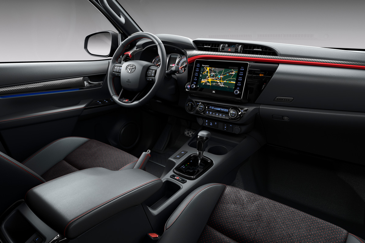 Силовая установка осталась без изменений. В движение Hilux GR Sport приводит 2,8-литровый турбодизель (200 л. с., 500 Нм), который устанавливается на пикапы с 2020 года. Спортивная версия будет доступна исключительно с двойной кабиной и сможет тащить прицеп весом до 3,5 тонны.