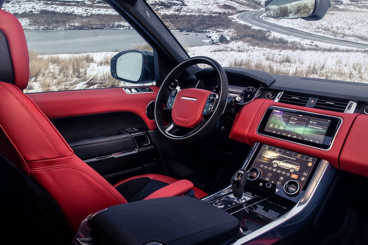 В оформлении салона внедорожника появился ряд новых для модели Range Rover Sport деталей. Кресла имеют электрорегулировку в 16 направлениях и обновленную гамму материалов и цветов обивки. Рулевое колесо и рычаг переключения передач обшиты искусственной замшей, подрулевые переключатели передач выполнены в цвете Satin Chrome. На приборной панели автомобиля появился логотип HST.