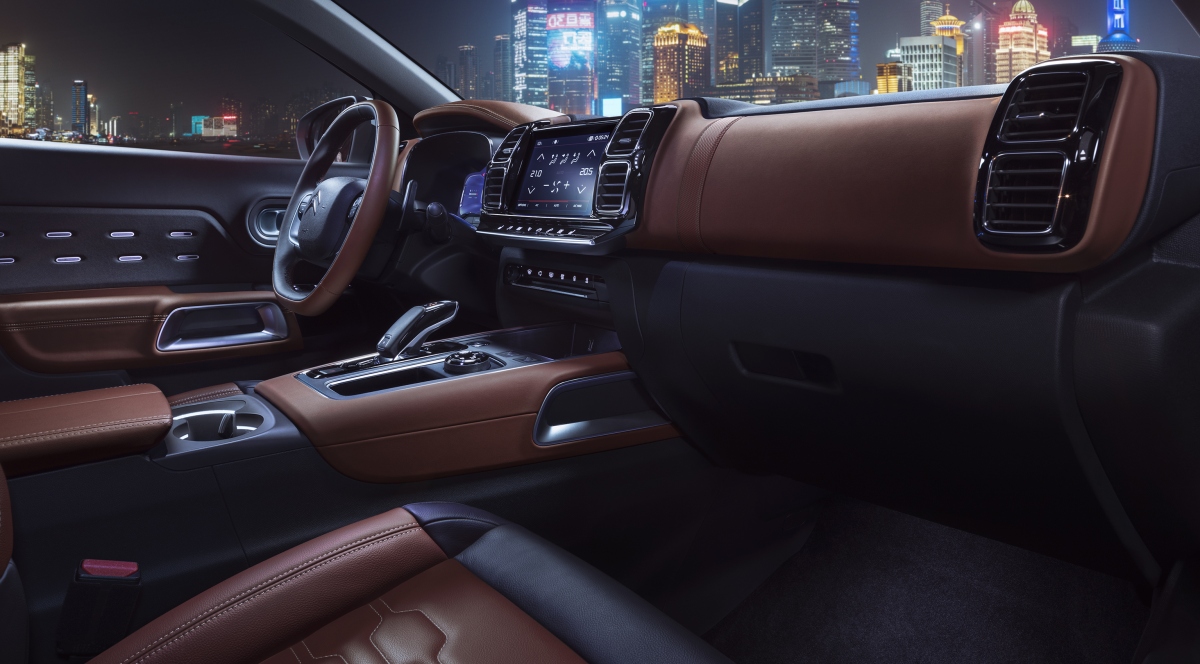 Салон нового C5 Aircross оформлен в стилистике новых C3 и C4 Cactus. Панель приборов представляет собой большой ЖК-дисплей диагональю 12,3 дюйма, управление основными сервисными функциями вынесено на 8-дюймовый сенсорный экран на центральной консоли. Покупателям предложат широкий выбор материалов отделки – от ткани с эффектом 3D до кожи Nappa.