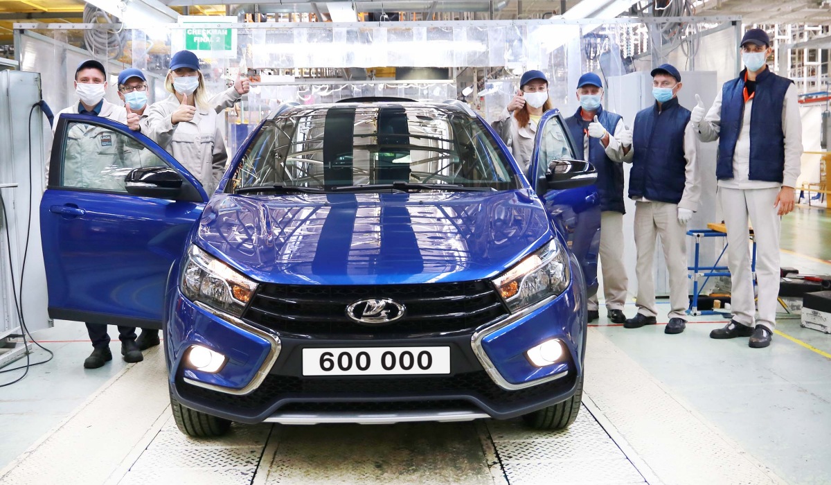 Завод Lada в Ижевске выпустил юбилейную Vesta. Автомобиль под номером «600 000» в версии SW Cross предназначен для экспорта в Республику Беларусь.
