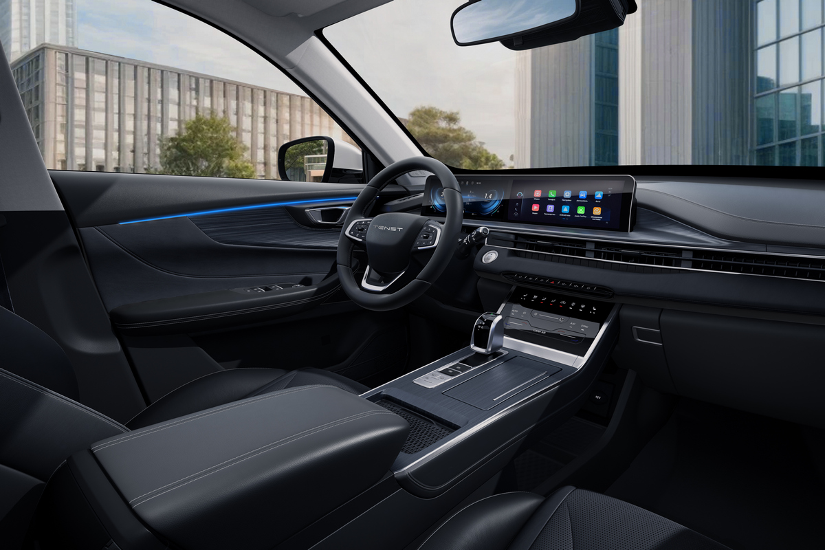 В перечень доступного для Tenet T4 оснащения также входят: сдвоенная панель экранов диагональю по 10,25 дюймов, кондиционер, камера заднего вида, три USB-разъёма, системы ABS и ESC, круиз-контроль, четыре подушки безопасности, «зимний» пакет и 17-дюймовые алюминиевые литые колёсные диски.