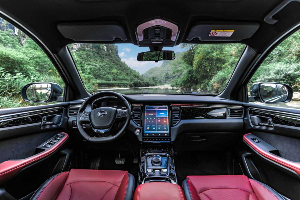 В салоне SWM G01 – кожаные сиденья, сиденье водителя с функцией вентиляции и подогрева, 10-дюймовый сенсорный дисплей мультимедиа и камера заднего вида с динамической разметкой.