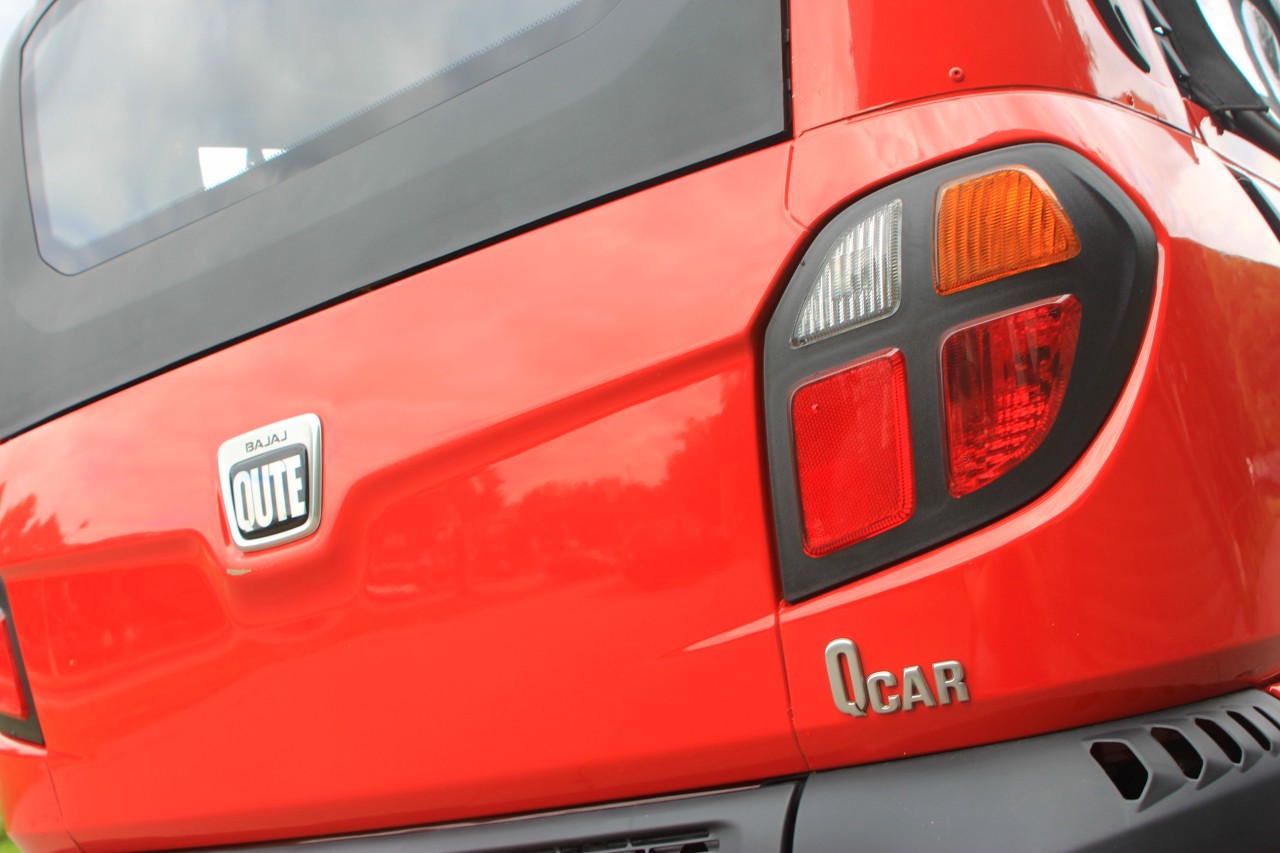 Внешне чудаковатая машина привлекает внимание, конечно, своим размером. Габариты 2752х1312х1650 мм, то есть машина чуть длиннее и выше нового Смарта, при этом почти на 300 мм его уже. То есть, Qute почти вдвое уже любой полноразмерной машины. А самое интересное, что при таких параметрах Bajaj является четырехдверным четырехместным хэтчбеком – багажной двери у Qute нет.