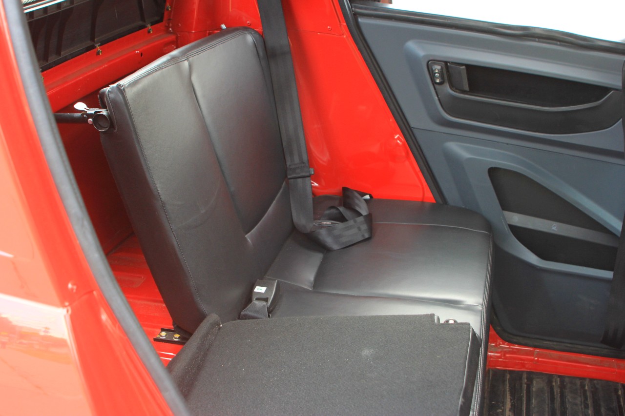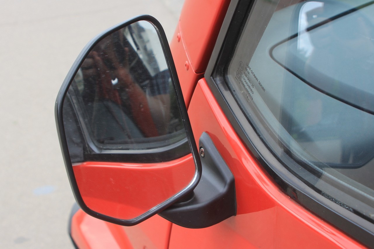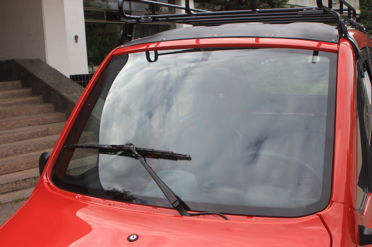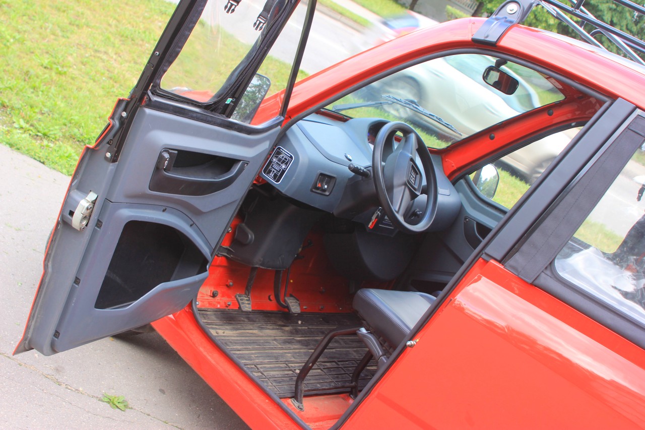 Начнём с того, что у машины нет ни привычных окон, ни замков на дверях. На ключ запирается всё – багажник спереди, лючок бензобака, бардачки в салоне, но не двери! Закрыть машину можно, просунув руку через… виниловые окна на молниях, пришитых к двери. Их же можно смотать в рулон.