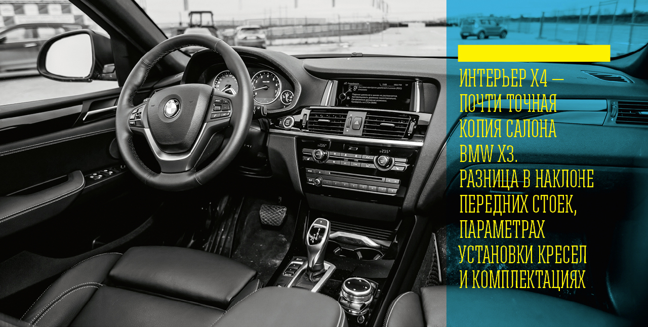 Машины с каждым годом получают все более агрессивный внешний дизайн (особенно это касается BMW серии М), но салон остается практически таким же, без ярко выраженной спортивности. Да, здесь установлены спортивные кресла, а на «приборке» можно вывести показатели мощности и крутящего момента, но общая стилистика осталась прежней. Садишься в обычную машину либо в X4, салон практически не меняется. Притом что данный автомобиль стоит около 3,5 млн рублей.