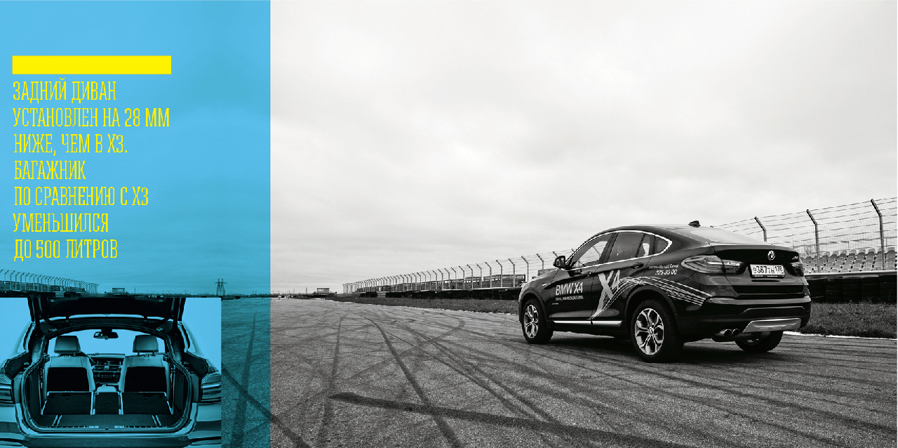 Управляемость автомобилей BMW — столь же мощный стимул для покупки «баварцев», сколько их дизайн и престиж марки. Острые реакции, монументальная устойчивость на трассе и отзывчивое шасси даже в городском режиме езды дают о себе знать и дарят то самое удовольствие от вождения, которое BMW верно пронесли сквозь десятилетия от самых первых моделей до своих последних новинок. От кроссоверов и им подобных вариаций многие не ждали спортивности в характере — и зря: загнав новый X4 на гоночную трассу автодрома «Санкт-Петербург», мы в этом убедились.