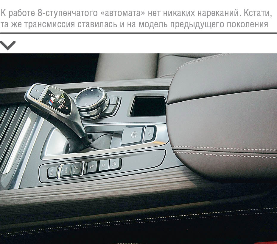 К качеству материалов отделки и общему виду интерьера претензий также нет — по этим параметрам новинка, чей салон обшит кожей Nappa, облагорожен вставками из ценных пород дерева и подсвечен проходящими вдоль дверей и торпедо красивыми светодиодными полосами, однозначно превзошла своего предшественника. Однако на дороге «лимузинного» комфорта от этой модели ожидать не приходится — каждая крупная неровность или стык в асфальте отдается ударом не только в «зажатой» спортивной подвеске, но и в телах пассажиров. Впрочем, для владельцев BMW X5 это не новость: жесткость машины они принимают как данное.