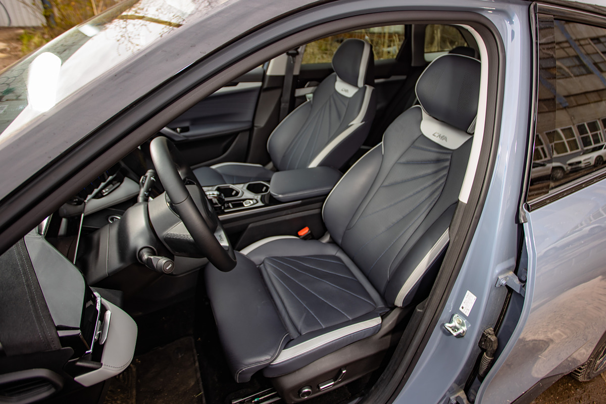 Салон нового «Атласа» с точки зрения дизайна производит более цельное впечатление: даже 13,2-дюймовый «планшет» мультимедийной системы не выглядит чужеродно на фоне авангардного и современного интерьера. Вот только атмосферную подсветку интерьера с вертикальными светящимися полосами лично я заменил бы на обычную. И ни за какие коврижки не согласился бы переключить ее в так называемый динамический режим, когда она начинает пульсировать в такт музыке.