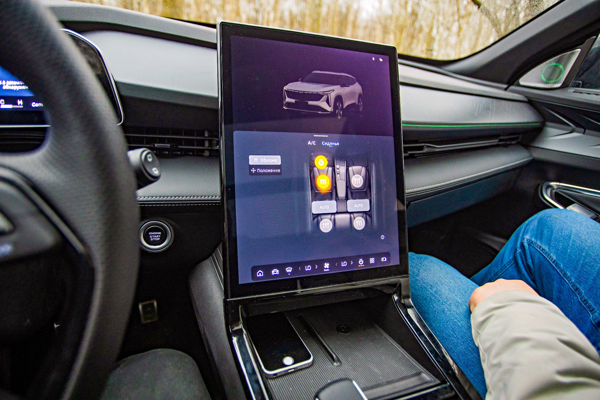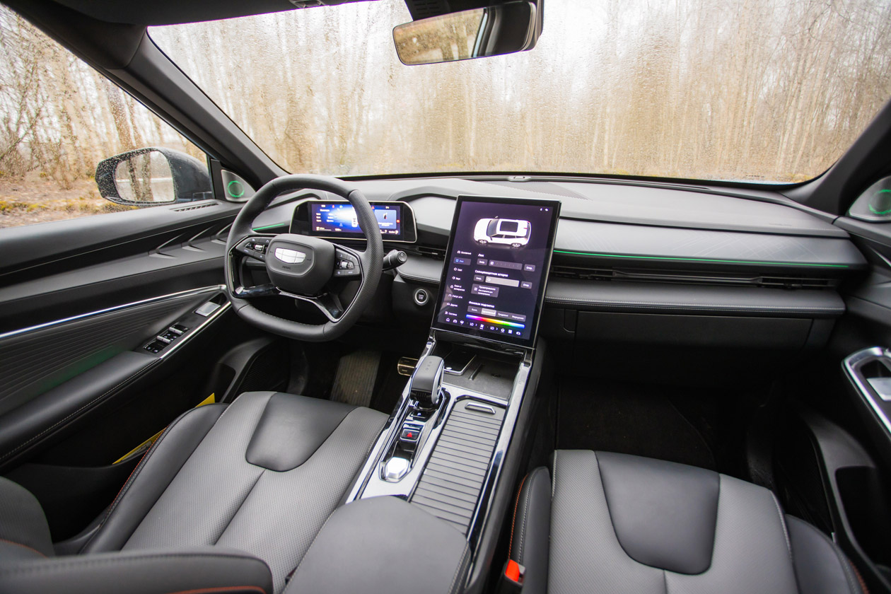Экокожа, которой обшит салон, приятна на ощупь, а вот передние сиденья вызывают вопросы у высокорослых водителей, которые жалуются на короткую подушку и нехватку диапазонов продольной регулировки сиденья и руля для их габаритов. Отметим также, что никаких «физических» клавиш настройки положения зеркал вы не найдете, и, чтобы их отрегулировать, придется заходить в отдельное меню и настраивать зеркала с помощью кнопок на руле. Такой же подход используют несколько китайских коллег Geely, но его удобство до сих пор вызывает сомнения. С другой стороны, есть функция памяти положения кресел и зеркал, что упрощает ситуацию.