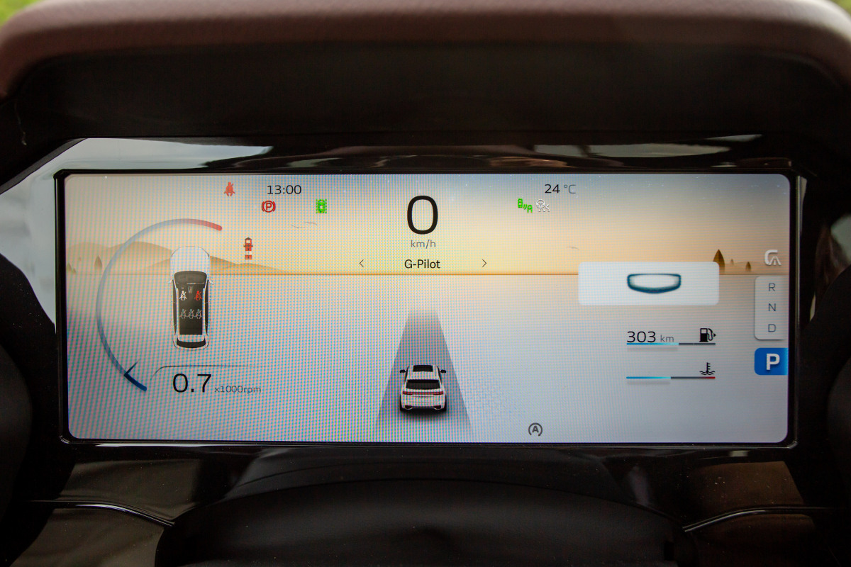 Настоящий же вау-эффект наступает в салоне: приятная на вид и на ощупь кожа двух цветов, прозрачная панорамная крыша, черная обивка потолка, три ЖК-дисплея высокого разрешения на передней панели (цифровая «приборка», экран мультимедийной системы плюс отдельный дисплей для переднего пассажира), трехзонный климат-контроль. Это точно китайский кроссовер? На фоне такого интерьера меркнет даже Volvo XC90!..