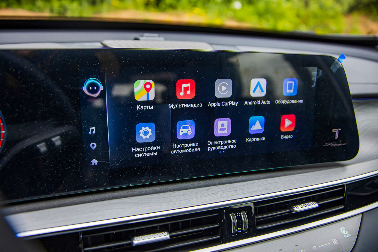 Внутри обеих моделей мы вновь видим знакомые мотивы, которые мы уже не раз наблюдали у других моделей каждой из марок. У Chery все приборы собраны в едином горизонтальном дисплее, который одновременно и щиток приборов, и мультимедиасистема. Как и прежде, все это лишено козырька и нещадно засвечивается в солнечный день, значительно усложняя считываемость приборов.
