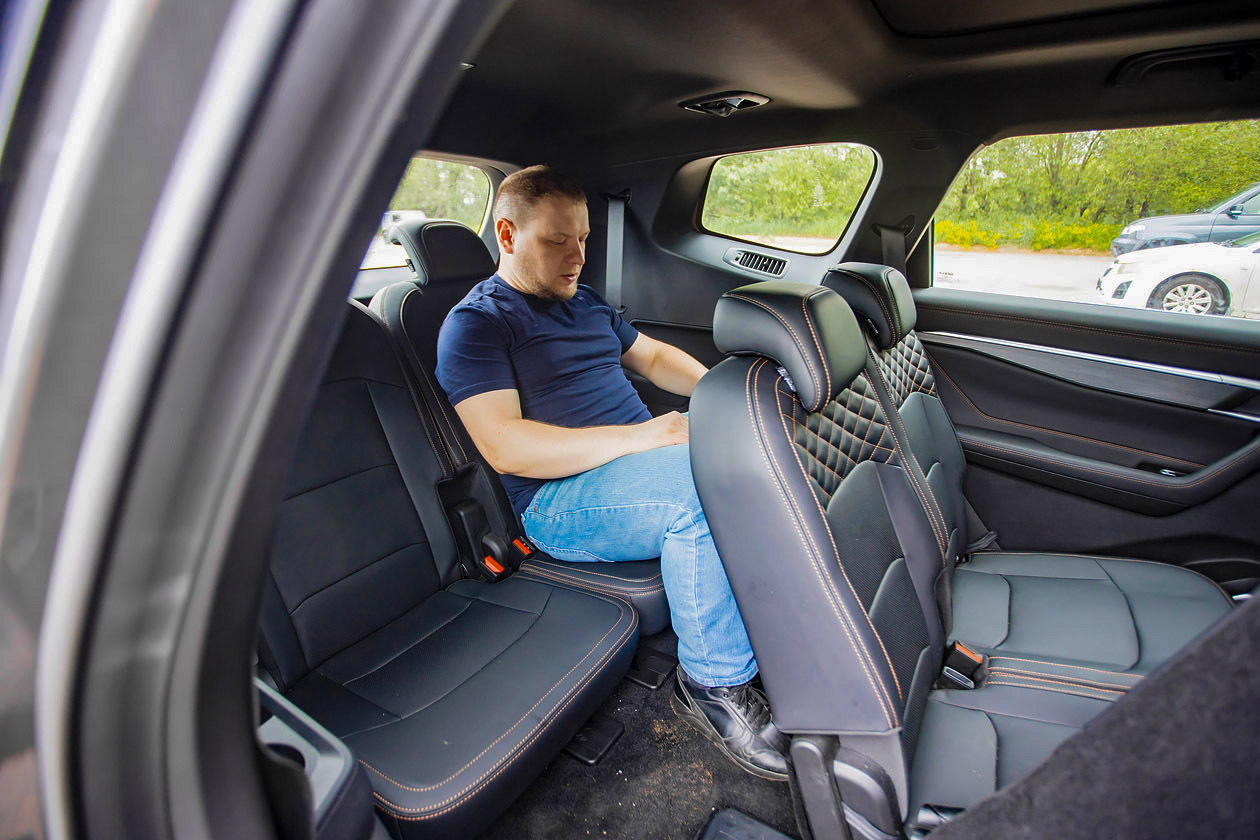 А вот сам третий ряд — это как раз то, за что потребители и выбирают эти два кроссовера. Собственные дефлекторы обдува и подстаканники в обоих автомобилях — уже неплохой арсенал для мест, которые в принципе являются факультативными. Однако больше пространства для ног все-таки в Okavango. Возможно, играют роль те самые 140 мм, на которые кузов у Geely длиннее, чем у Chery. Удобство и там и там примерно одинаковое: ноги приходится поджимать даже пассажиру невысокого роста. В общем, классический третий ряд, каким он должен быть, — идеальное место для ребенка, но взрослый осилит поездку от силы на пару часов.