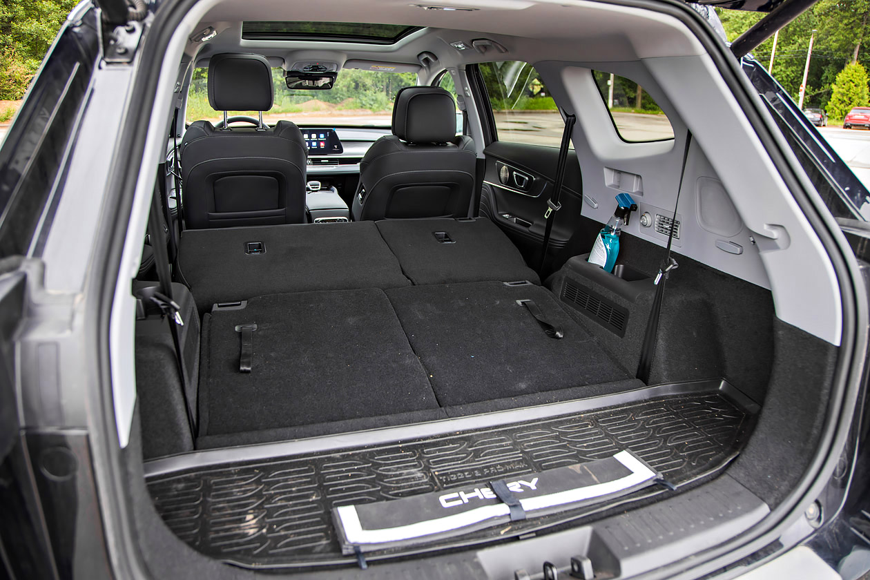 Зато, если вам все-таки не нужен третий ряд сидений, оба кроссовера предложат по-настоящему просторный багажный отсек. Опустив не только третий, но и второй ряд сидений, вы получите огромный багажник — и его можно использовать не только для перевозки груза значительных объемов, но и как место для ночевки. У обеих моделей есть свои плюсы и минусы. Если у Chery при складывании всех кресел остается совсем небольшой угол, то Geely обеспечивает абсолютно ровный пол, но с довольно приличным зазором между рядами, в то время как у Tiggo 8 Pro Max пол получается без проемов.