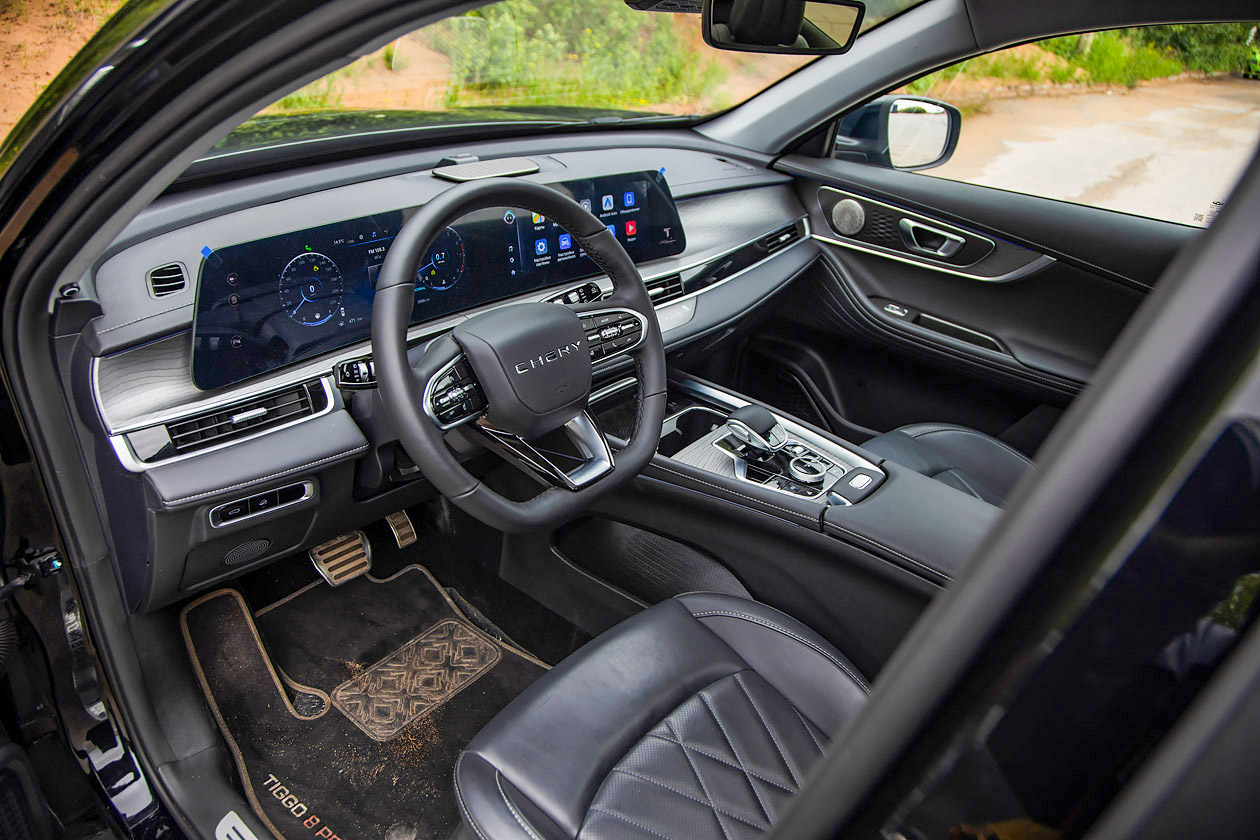 К тому же вряд ли можно найти более похожих конкурентов со всех точек зрения. Размеры моделей: Chery Tiggo 8 Pro Max — 4720 x 1860 x 1705 мм, Geely Okavango — 4860 х 1910 х 1770 мм. Обе машины на нашем тесте — переднеприводные.