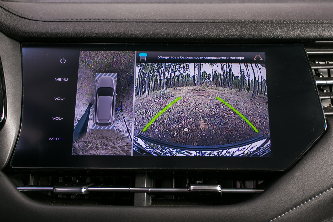 Есть к чему придраться и по части обзорности. Заднее стекло F7 столь сильно «завалено», а нижняя его кромка расположена так высоко, что смотришь в него в итоге как сквозь узкую амбразуру! Благо автомобиль оснащен не только датчиками парковки «по кругу», но и двумя видеокамерами — фронтальной и заднего вида. При маневрировании изображение с них выводится на 9,0-дюймовый дисплей мультимедийной системы и переключается автоматически — в зависимости от того, какой режим включен в коробке передач, R или D. Радуют также большая площадь бокового остекления и крупные боковые зеркала, которые к тому же практически не искажают «картинку».