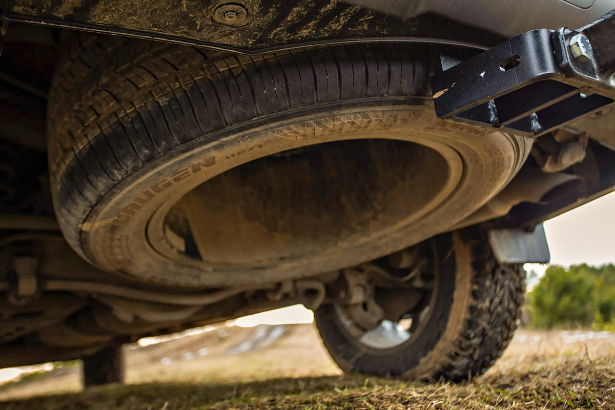 Единственная интересная деталь — кофр на задней двери, который имитирует бокс для запасного колеса. По его размерам понятно, что там даже не «докатка»: очень уж компактный отсек. Это просто дополнительный бокс, на котором размещена камера заднего вида с омывателем. Открывается он механически — ключом, который нужно доставать из пластикового корпуса. А места внутри хватит только под небольшой набор инструментов, так что это скорее просто украшение внешнего вида машины без особой функциональной нагрузки.