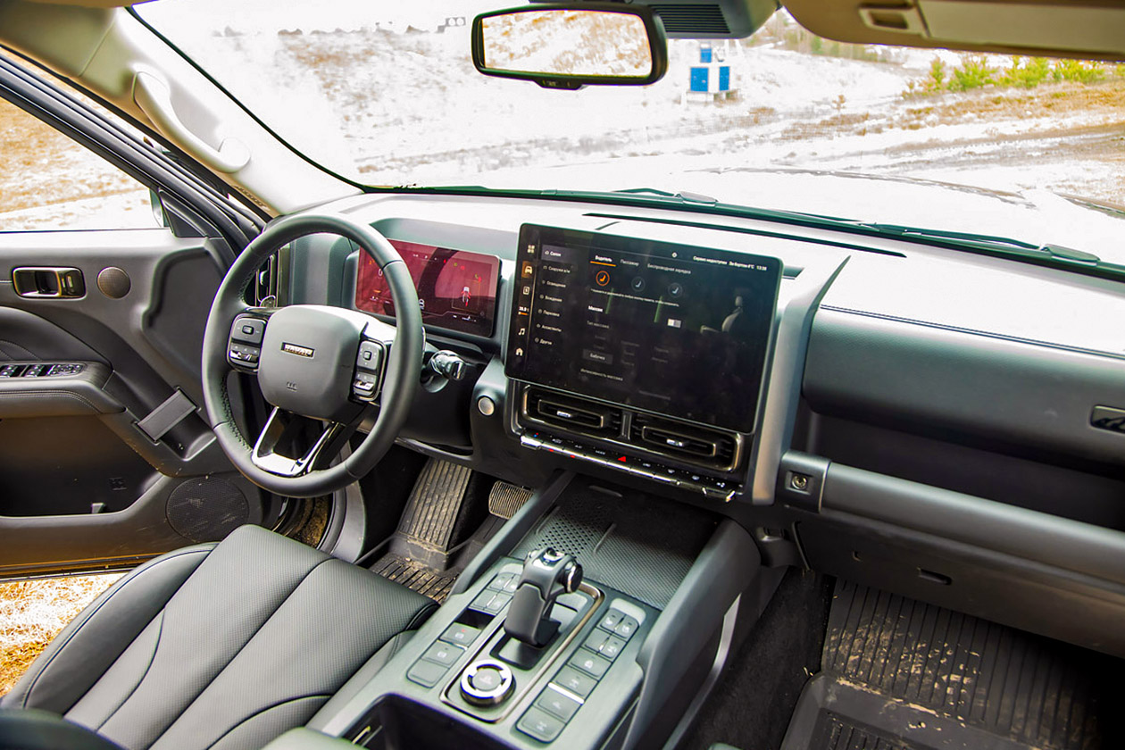 В интерьере «Эйч-девятого» кубизм также доминирует, но в целом это уже гораздо более привычный нам салон. Практически идентичным расположением всех приборов и экранчиков может похвастаться добрая половина всех современных «китайцев» в России. Руль хорошо знаком нам по остальным моделям бренда Haval, как и футуристичный рычаг коробки передач. Полоска клавиш управления «климатом» вынесена под экран мультимедиасистемы, а селектор коробки окружен россыпью кнопок, отвечающих за внедорожные режимы. В целом все удобно, и для тех, кто хотя бы шапочно знаком с продукцией из Поднебесной, никаких сюрпризов в эргономике салона не будет.