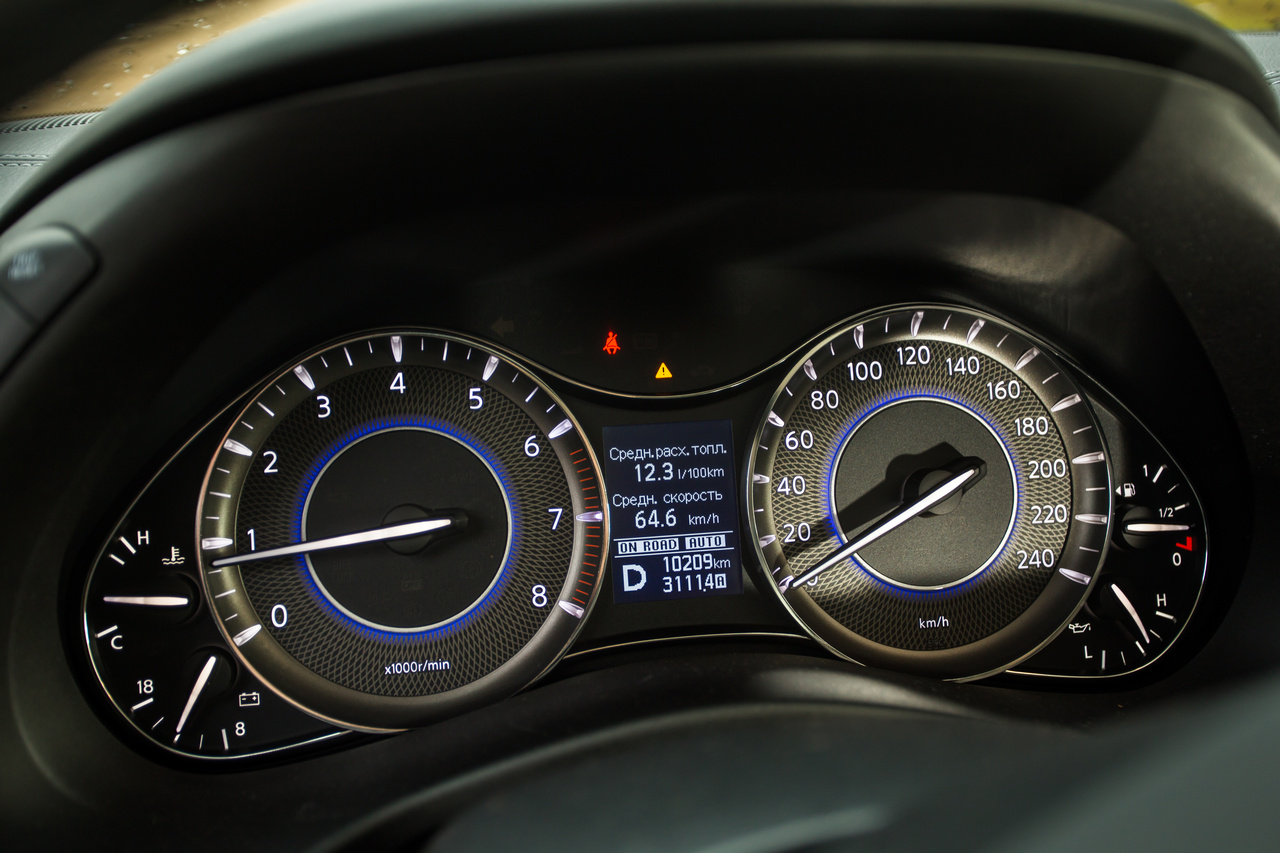 Как можно понять, при таких характеристиках никакие дополнительные режимы ни коробке, ни двигателю не нужны — при почти трехтонном весе Infiniti QX80 разменивает первую «сотню» за 7,5 секунды, аж приседая на разгоне на заднюю ось и довольно легко достигая предельных 210 км/ч. Правда, на трассе длинноходную педаль газа лучше сразу продавливать основательно, иначе внедорожник будет разгоняться этапами. Кстати, это касается и тормозов: для того, чтобы остановить со скорости трехтонную тушку, на педаль нужно нажимать не стесняясь.