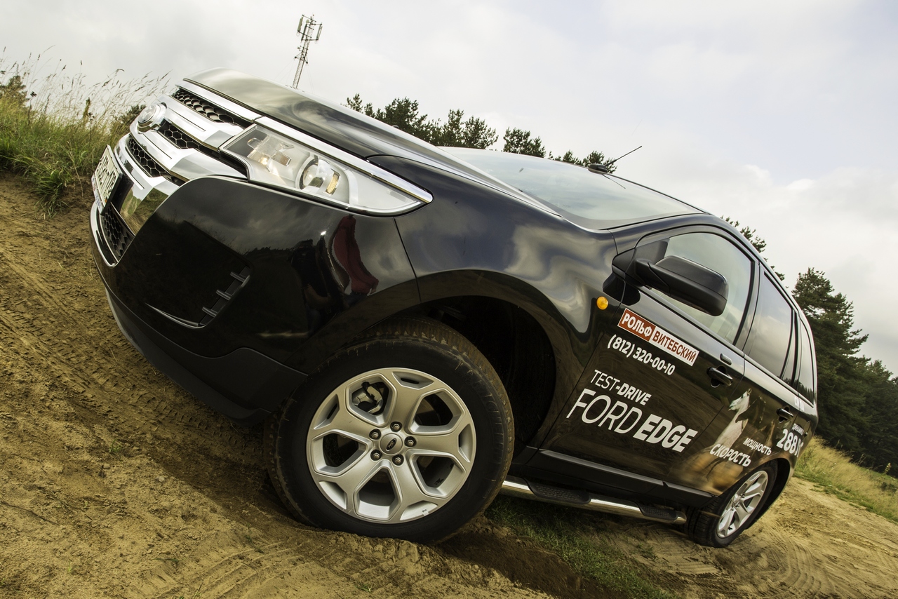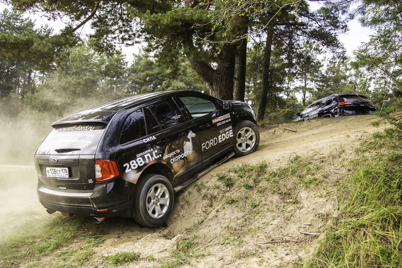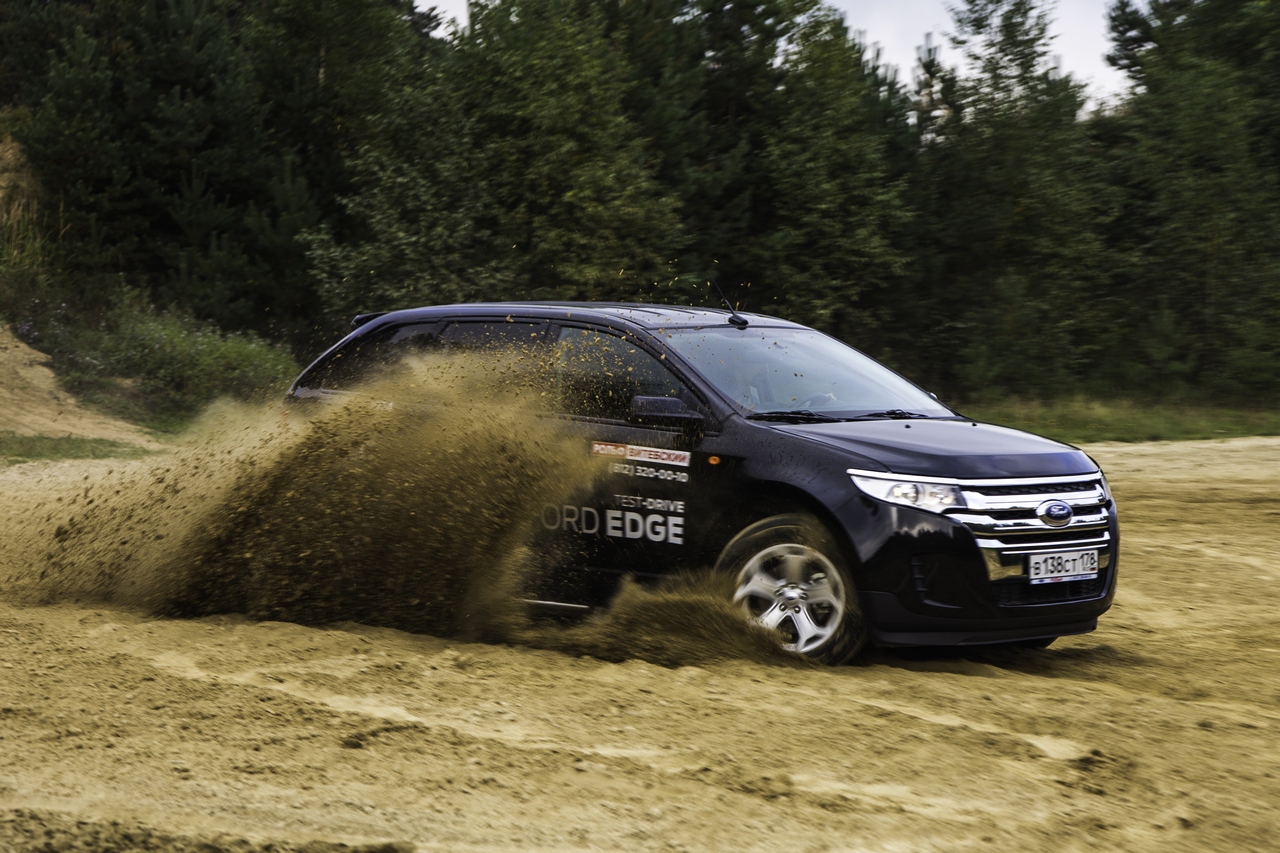 Заезд в песочное озеро показал, что Edge выползает из таких ситуаций исключительно благодаря мощному мотору, буквально дорываясь колесами до твердого грунта. А штурм крутого песчаного косогора с частичным вывешиванием колес дался кроссоверу с огромным трудом – никаких систем подтормаживания и переброски момента по колесам у машины нет, в результате чего часть мощности тратится впустую на пробуксовку. Под конец полевых испытаний Ford Edge и вовсе поднял белый флаг, моргнув ненадолго лампочкой перегрева муфты.