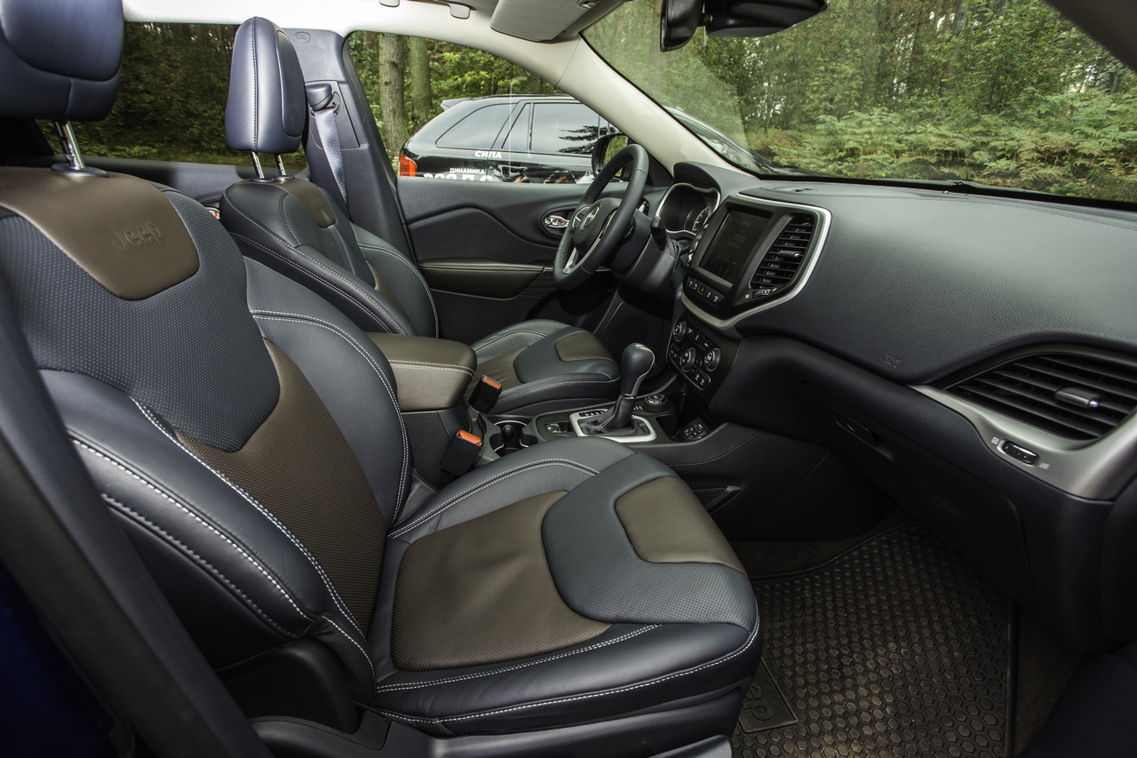 Интерьерщики Jeep Cherokee, устав слушать претензии прессы и покупателей к качеству отделки и рубленным поверхностям с грубым дизайном, сделали интерьер таким, каким его видел разве что владелец Grand Cherokee. Качество отделочных материалов выше всяких похвал, «мягкая» стилистика с плавными перетекающими формами визуально убаюкивает, не давая окончательно заснуть только благодаря наличию двух огромных дисплеев – там столько всего красивого и интересного!