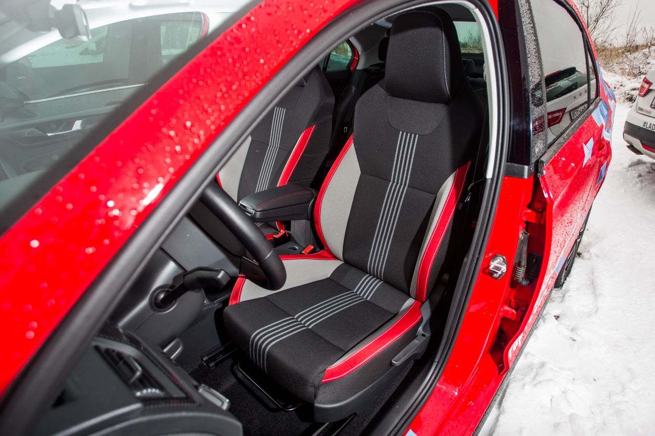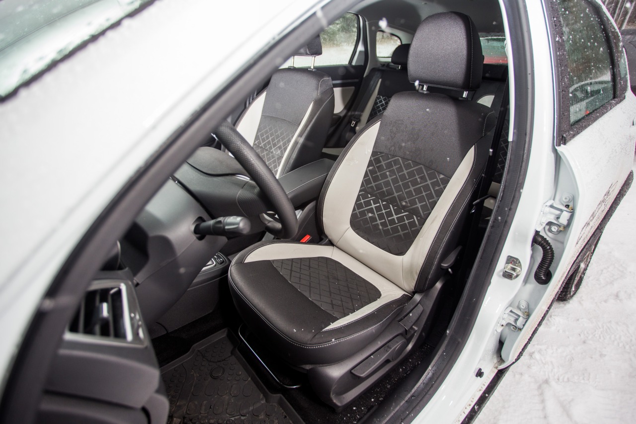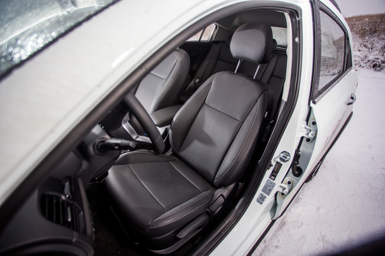 Лучшие кресла, конечно, у Skoda (слева) — в таких хоть на гоночный трек. Правда, и обычные кресла Rapid всегда оставляли приятное впечатление выверенными параметрами. Сидушки Kia (по центру) радуют нейтральностью — в них будет одинаково удобно людям разной комплекции, хотя псевдокожаный салон мы считаем для подобного авто излишеством: и скользкий, и холодный. Сиденья Lada Vesta SW Cross (справа) тоже неплохи — диапазонов человеку среднего роста хватает, боковая поддержка обозначена, а из недостатков можно отметить разве что неравномерный профиль спинки.