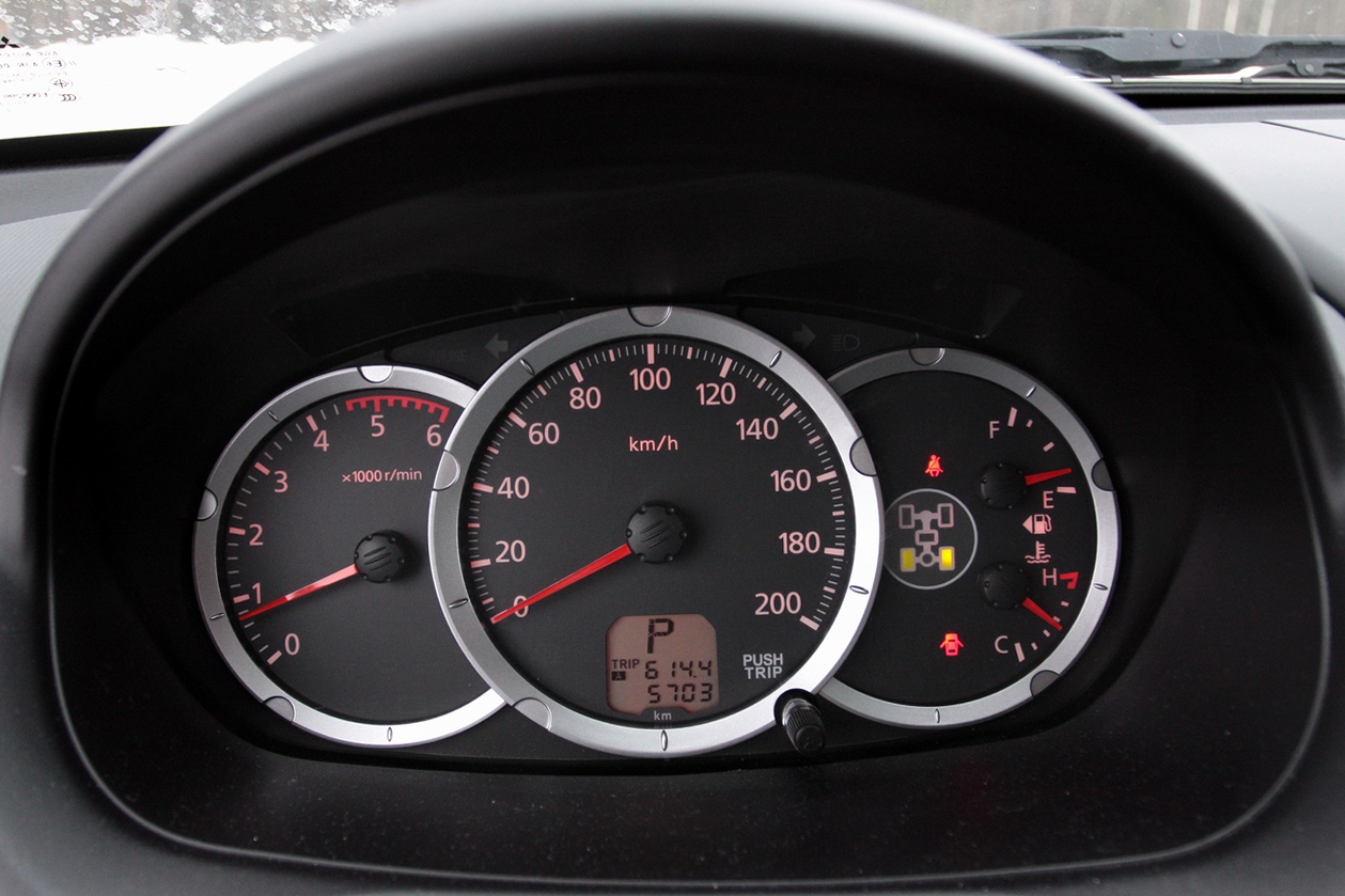 Честно сказать, черепашьих показателей в 17,8 секунды до 100 км/ч мы боялись напрасно – субъективно автомобиль воспринимается заметно динамичнее. Прежде всего, это заслуга тяглового дизеля, выдающего 314 Нм момента уже на 2000 оборотов и пришпоренного довольно чувствительным акселератором. Если до «сотни» японский пикап разгоняется и не очень быстро, то до 60 км/ч вполне нормально – при размеренной езде в городском потоке машина ни от кого сильно не отстаёт. Ну а дальше настроение задаёт как раз старая трансмиссия на растянутых передачах.