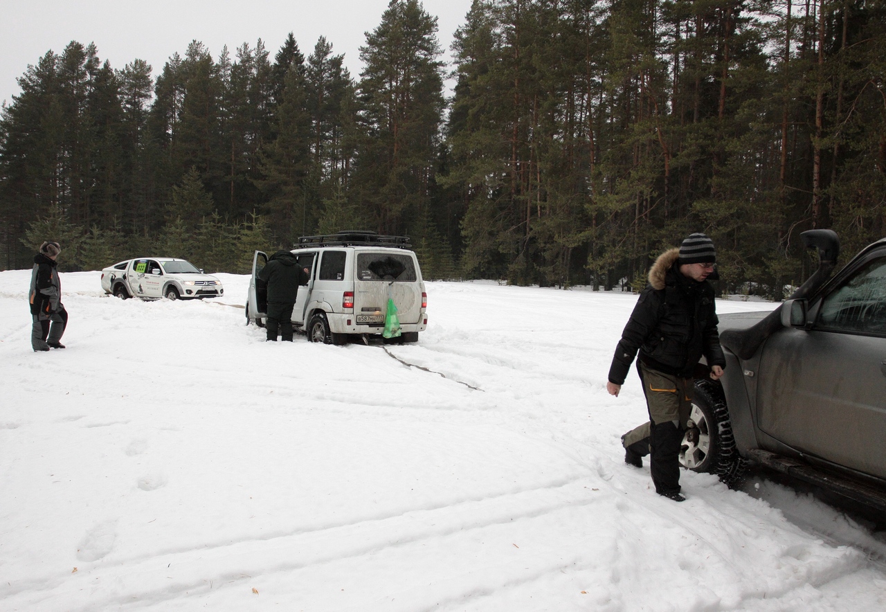 Мы осмелели настолько, что запустили L200 в ещё более глубокий снег, фактически скрыв колеса из виду и, увы, допустили ошибку, начав выворачивать на старую колею. Мгновенно набившийся под арки тающий и слипающийся в монолит снег и не самая лучшая зимняя резина обездвижили машину даже тогда, когда все четыре колеса были откопаны. Зарылись в повороте. Пришлось идти за подмогой.
