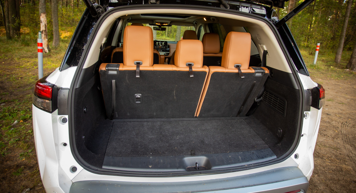 Багажник нового Pathfinder — мечта любого дачника! Даже при всех установленных сиденьях автомобиль вмещает 470 литров поклажи, если грузить «под полку».