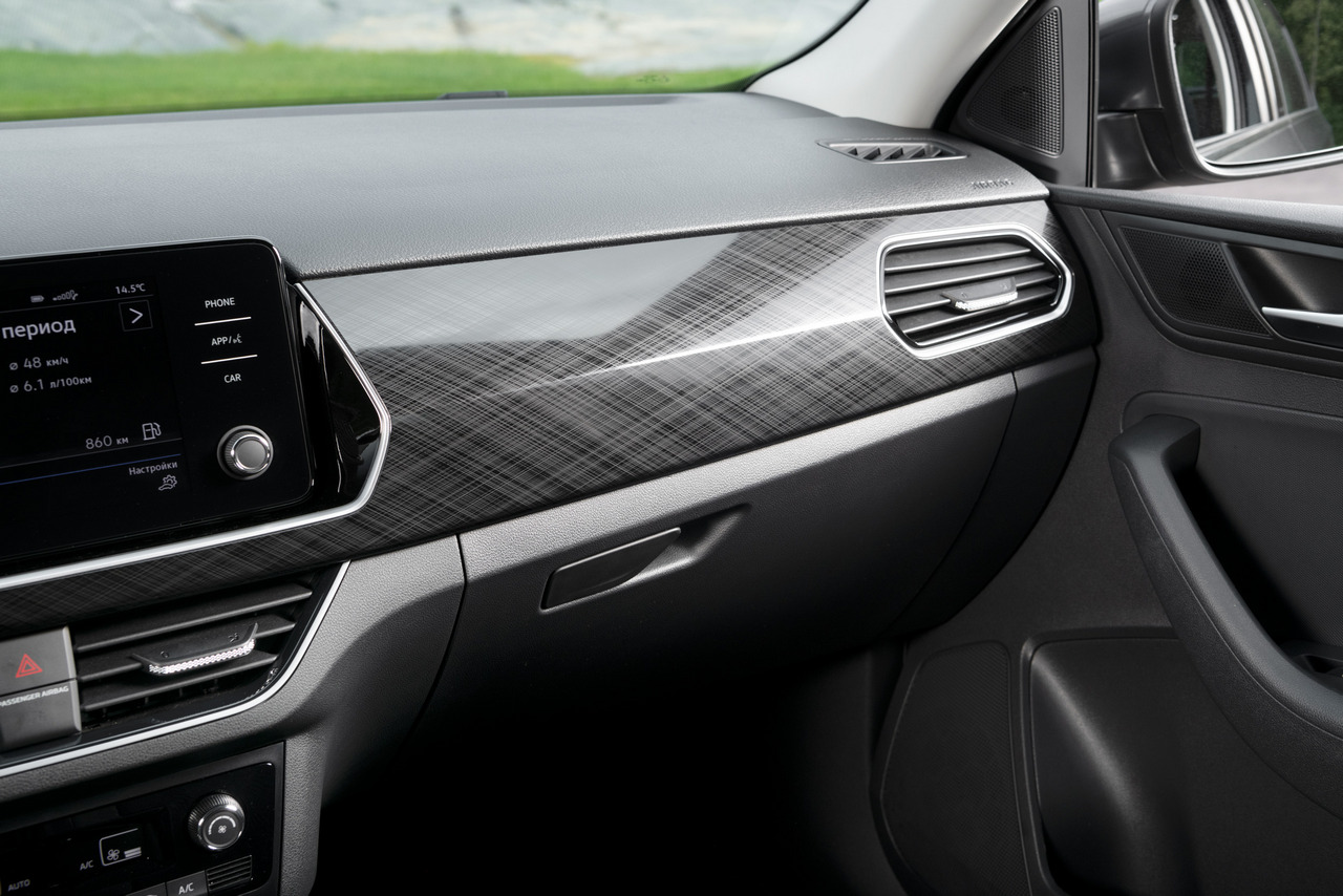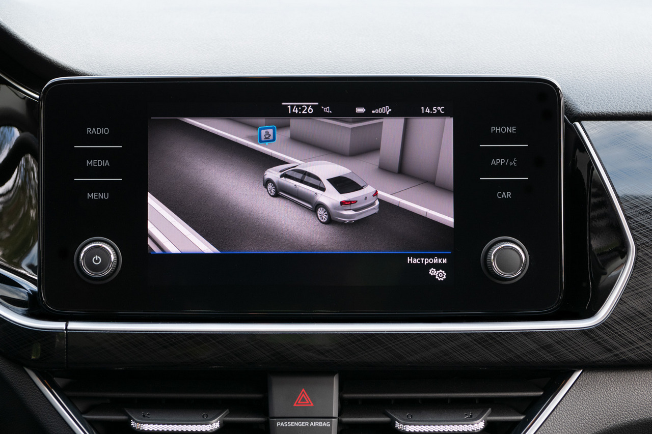 Мультимедийный комплекс с 8-дюймовым экраном унифицирован со «Шкодой». Работает он отлично и выглядит нарядно. Кстати, на тесте Polo мы узнали, что штатная навигация для этой системы не предусмотрена в принципе — только через подключение к смартфону