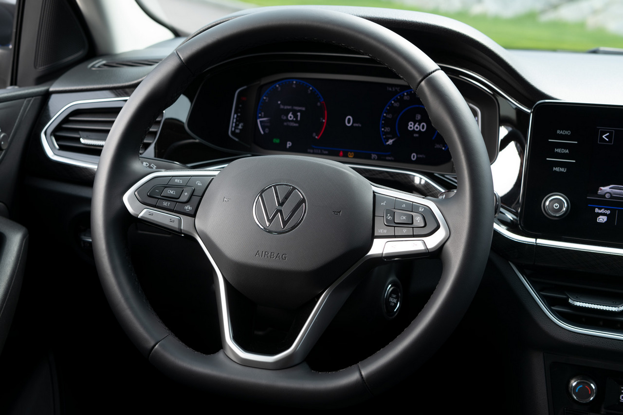 Polo хвастает фирменными узорами панелей, овальным рулем от модели Golf восьмого поколения и главной «фишкой», которой пока нет ни у кого в классе, — цифровым щитком приборов от седана Jetta. Даже несмотря на оставшийся жесткий отделочный пластик, все вместе смотрится очень добротно и, можно сказать, дорого.