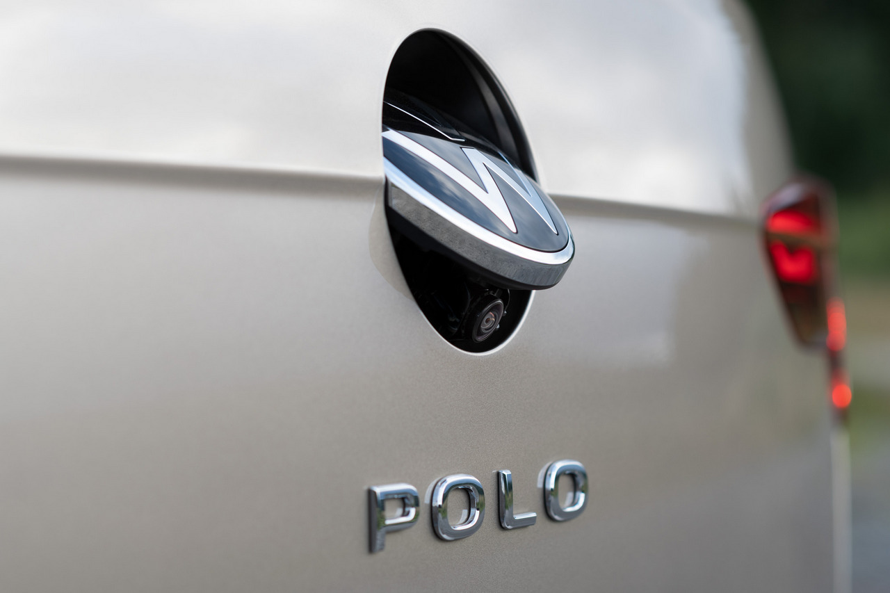 Благодаря фирменной фольксвагеновской установке в логотип камера заднего вида у Polo всегда чистая
