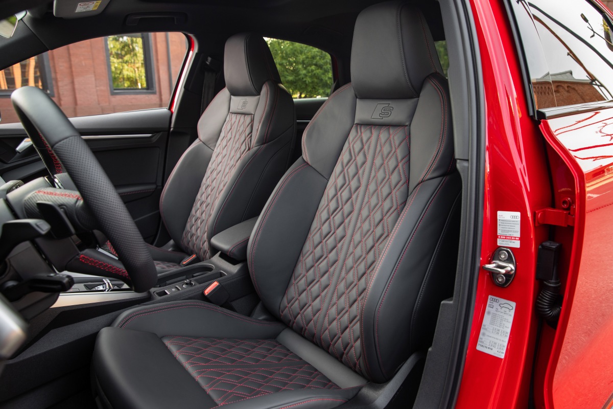 На тест-драйве присутствовали автомобили с двумя типами передних кресел — стандартными (на фото внизу слева) и спортивными S-line (внизу справа).